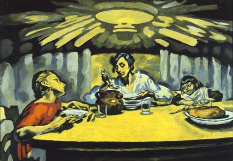 ‘Lampelys. Edith og de to Pigebørn ved Middagsbordet. Edith øser op af Suppen. Lampen straaler som en Sol over Figurerne. Prisen? Edith siger at jeg ikke maa sælge det under 25.000 kroner, hun vil selv beholde det hvis ingen vil give den pris. Jeg tror det er et af mine allerbedste billeder.” Således beskrev Willumsen Aftensuppen, da han i sommeren 1918 skulle fortælle sin veninde Alice Bloch, hvad han havde stående til de “Købelystne”. Mens han var i Sydfrankrig, arbejdede hun i København ihærdigt på at skabe et marked for hans kunst.’