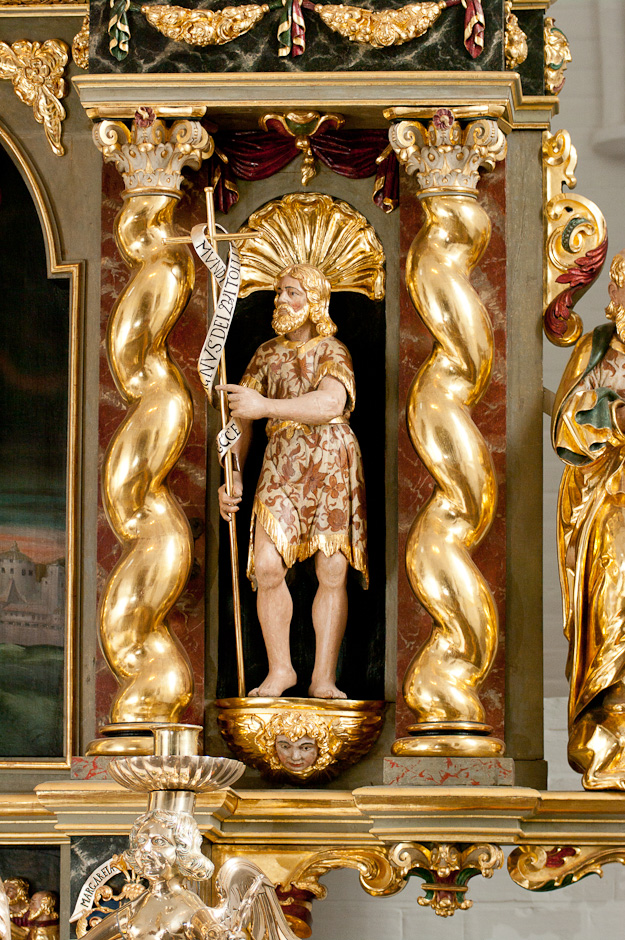 Dåbsidentiteten – som Guds elskede børn – forpligter! Så mens jeg med epistlen (måske) glæder mig over, hvem jeg er – og eventuelt fyldes med en snert såkaldt kristelig skråsikker selvtilstrækkelighed (narcissisme er bestemt ikke kun en sekulær størrelse men har også en slægtning, der rimer på frelses-egoisme) – så er det en rigtig go idé atter at rette blikket op mod Johannes Døberen – der oppe på altertavlen! Der står han og peger væk fra sig selv, imens han siger SE!