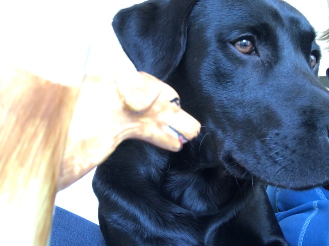 Tag for eksempel Moses, ham der står både oppe på alteret og nedenunder mig, hvor han bærer prædikestolen … begge steder står han med de 10 bud i favnen – hvor der blandt andet står: du må ikke slå ihjel. På Sinaj-bjerget hentede han lovtavlerne. Han hentede dem af to omgange, det første sæt “var Guds eget værk, og skriften var Guds egen skrift, mejslet i tavlerne” (2. Mos 32,16), som han i raseri kastede mod jorden, da han kom ned og så, at folk dansede om guldkalven. Derpå samlede Moses en gruppe mænd og sagde til dem: “Dette siger Herren, Israels Gud: Spænd hver især jeres sværd om lænden, og gå lejren rundt fra den ene port til den anden, og slå både broder, ven og nabo ihjel.” (2. Mos 32,27) – så på den dag blev henved 3000 mand dræbt! Moses blev efter kort tid atter kaldt op på bjerget, hvor Jahve bad ham tage imod diktat – denne gang selv skrive budene ned – vel at mærke efter, at han – Jahve – have sat prædikater som barmhjertig og nådig på sig selv og mindet Moses om, at han også “straffer fædres skyld på børn, børnebørn, oldebørn og tipoldebørn” (2. Mos 34,7).