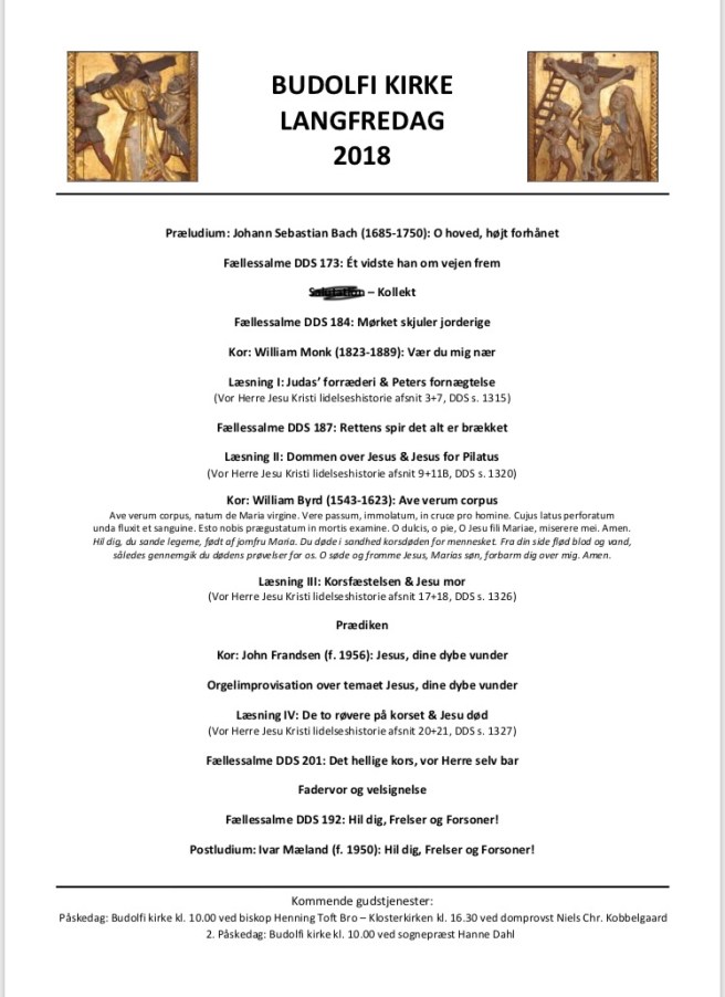 På korset langfredag fuldendes gudsriget med en lettere omskrivning af Grundtvigs berømte salme Den signede dag, hvor det i sidste vers lyder:
