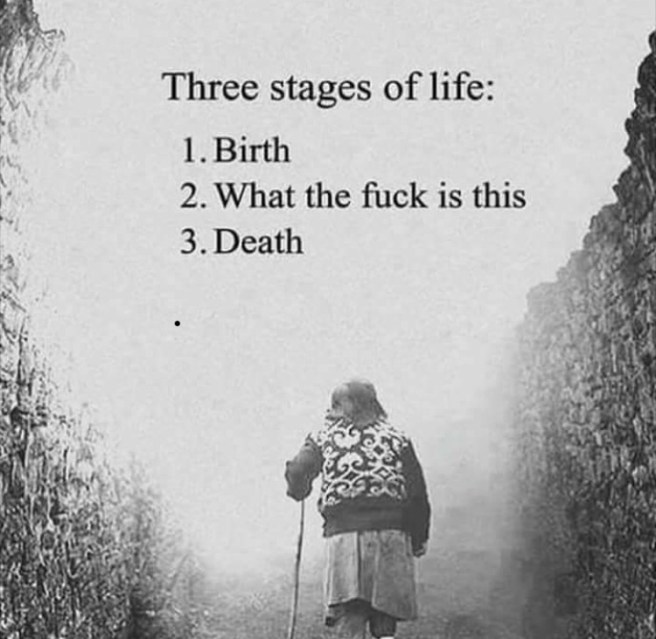 3 stadier har livet – læste jeg på et af de der både elskede og forbandede og afhængighedsskabende social-medier. Teksten stod på engelsk, men oversat til dansk og uden at gentage det efterhånden globale f-ord stod der:
