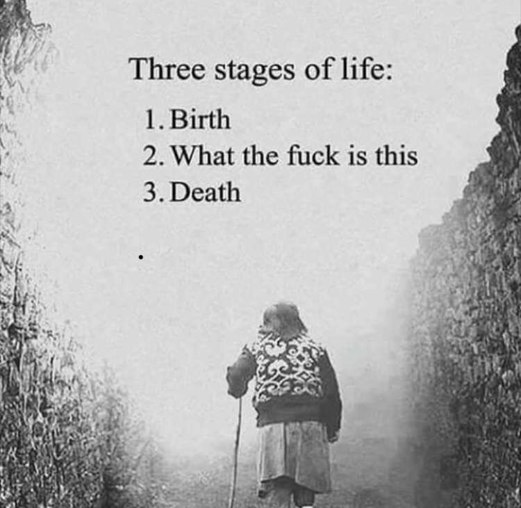 3 stadier har livet – læste jeg på et af de der både elskede og forbandede og afhængighedsskabende social-medier. Teksten stod på engelsk, men oversat til dansk og uden at gentage det efterhånden globale f-ord stod der: